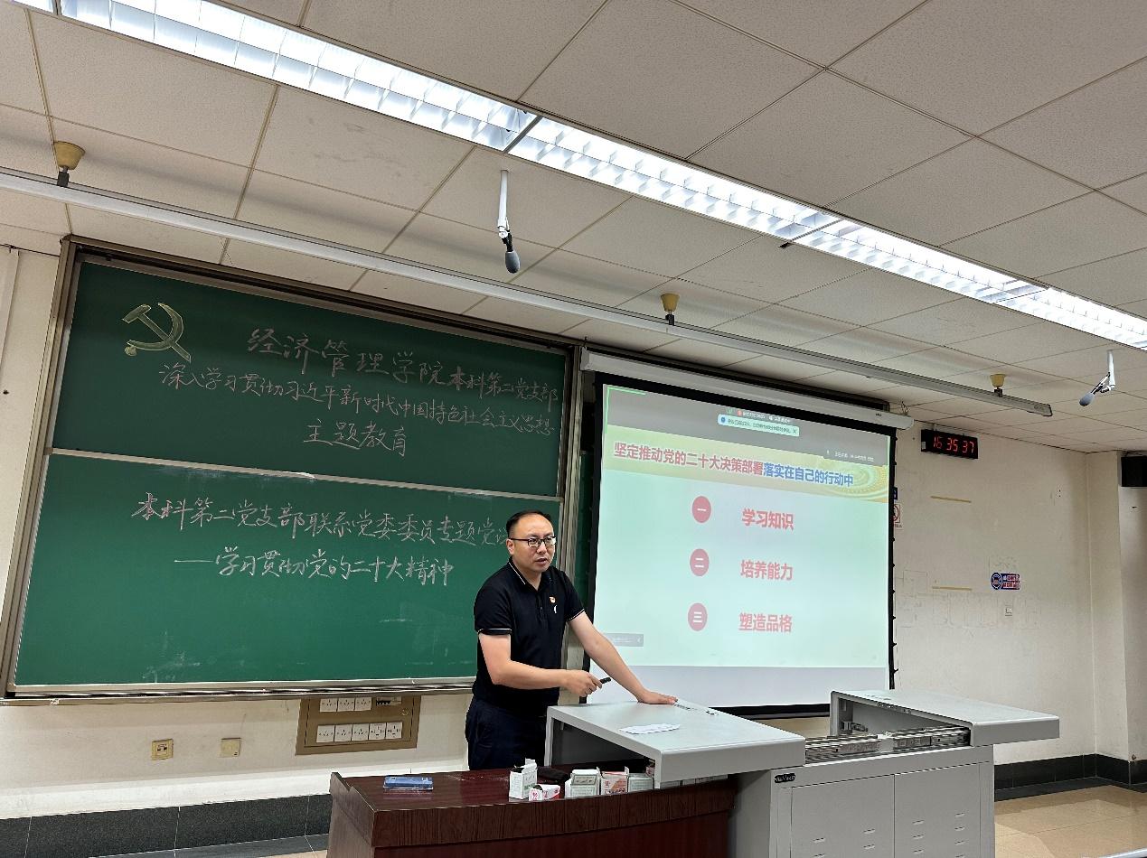 为扎实推进学习贯彻习近平新时代中国特色社会主义思想主题教育,6月8日,beats365本科第二党支部邀请党支部联系党委委员杨宏毅副书记为党支部成员讲授专题党课,加强理论学习,接受思想洗礼。