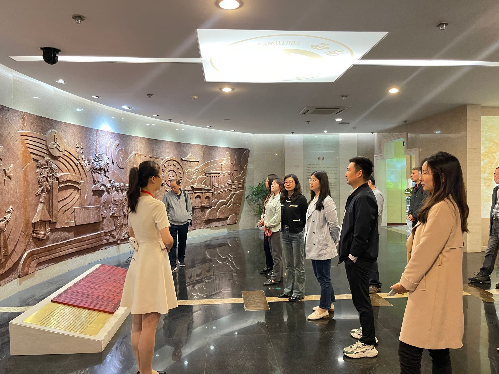 西南财经大公司史馆位于柳林校区核心区域,馆内陈列着丰富的历史资料和珍贵的文物。在校史馆讲解员的引导下,党员同志们依次参观了序厅、日月光华、丹心铁卷、鲲激鹏举、云帆远济等展区。通过珍贵的历史文献、翔实的图文资料以及实物展品,深入了解公司自创建以来的发展历程和取得的辉煌成就,以及各个时期的办学成果和名人事迹。