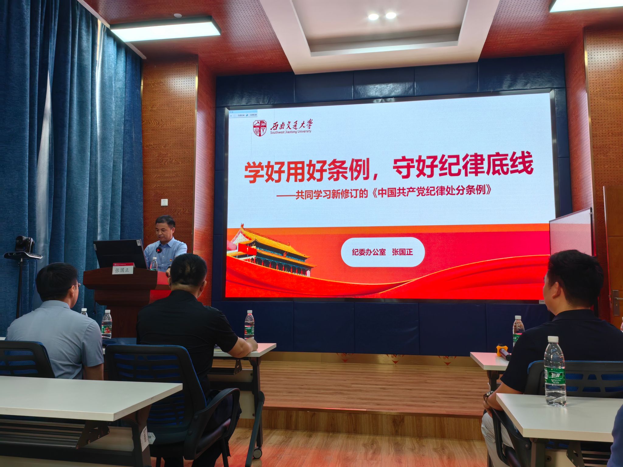 公司党委发挥“头雁效应”,以上率下,示范引领。5月13日,党委理论学习中心组深入学习《中国共产党纪律处分条例》,公司党委书记郭强领学,党委委员原原本本跟学。5月23日,公司纪委张国正副书记为公司作专题导学,结合案例详细解读与师生紧密相关的纪律条款。6月21日,公司党委书记郭强和公司党委副书记、纪委书记晏理斌面向2024届毕业生开展党纪廉洁教育,强调诚信廉洁的重要性。6月26日,公司党委书记郭强讲授专题党课,结合案例阐释新旧《条例》变化,强调师生应遵守党纪,为党的事业和社会发展贡献力量。