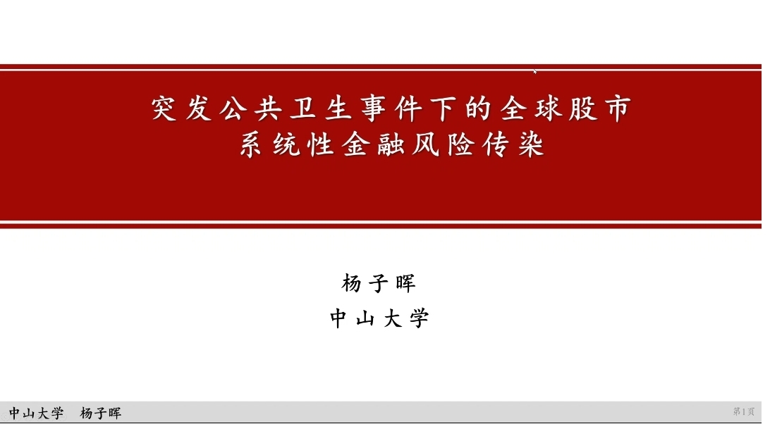 2021年10月19日下午15时,中山大学岭南公司杨子晖教授在线上开展了题为“突发公共卫生事件下的全球股市系统性金融风险传染”的学术报告,beats365金融与财务学系马锋副教授主持了此次讲座。