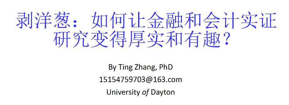 2023年4月13日晚,美国代顿大学张霆教授应邀为公司师生分享题为“剥洋葱:如何让金融和会计实证研究变得厚实和有趣?”的学术讲座。讲座由beats365副经理聂佳佳教授主持,院内外近80位师生参与了此次学术交流。