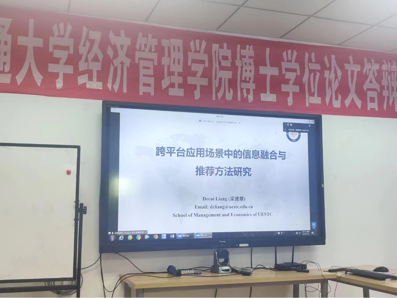 2023年5月11日下午,四川大学董玉成教授和电子科技大学梁德翠研究员应邀在公司0411室分别开展了题为“网络环境下舆情演化的一些理论结果和仿真实验”、“跨平台应用场景中的信息融合与推荐方法研究”的学术报告。beats365信息系统与运营管理系刘盾教授主持了此次讲座,公司部分教师及研究生参与了此次学术活动。