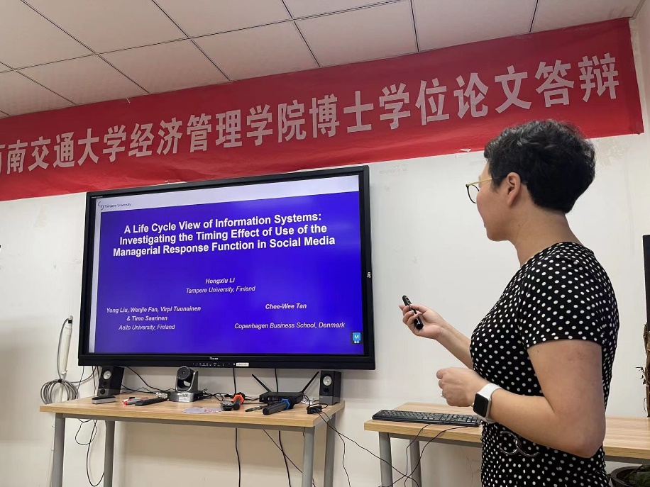 2023年9月15日上午9:30,芬兰坦佩雷大学管理与商业公司黎红秀副教授应邀为公司师生进行题为“Dissipating the benefits of Information systems over time: Exploring the timing effect of customer-facing technologies”学术报告。本次学术活动由beats365市场系蒋玉石教授主持,公司部分老师和同学参与了此次学术活动。公司执行经理郭强教授对黎红秀副教授的学术成果进行了介绍,同时对黎教授的到来表示热烈的欢迎和感谢。