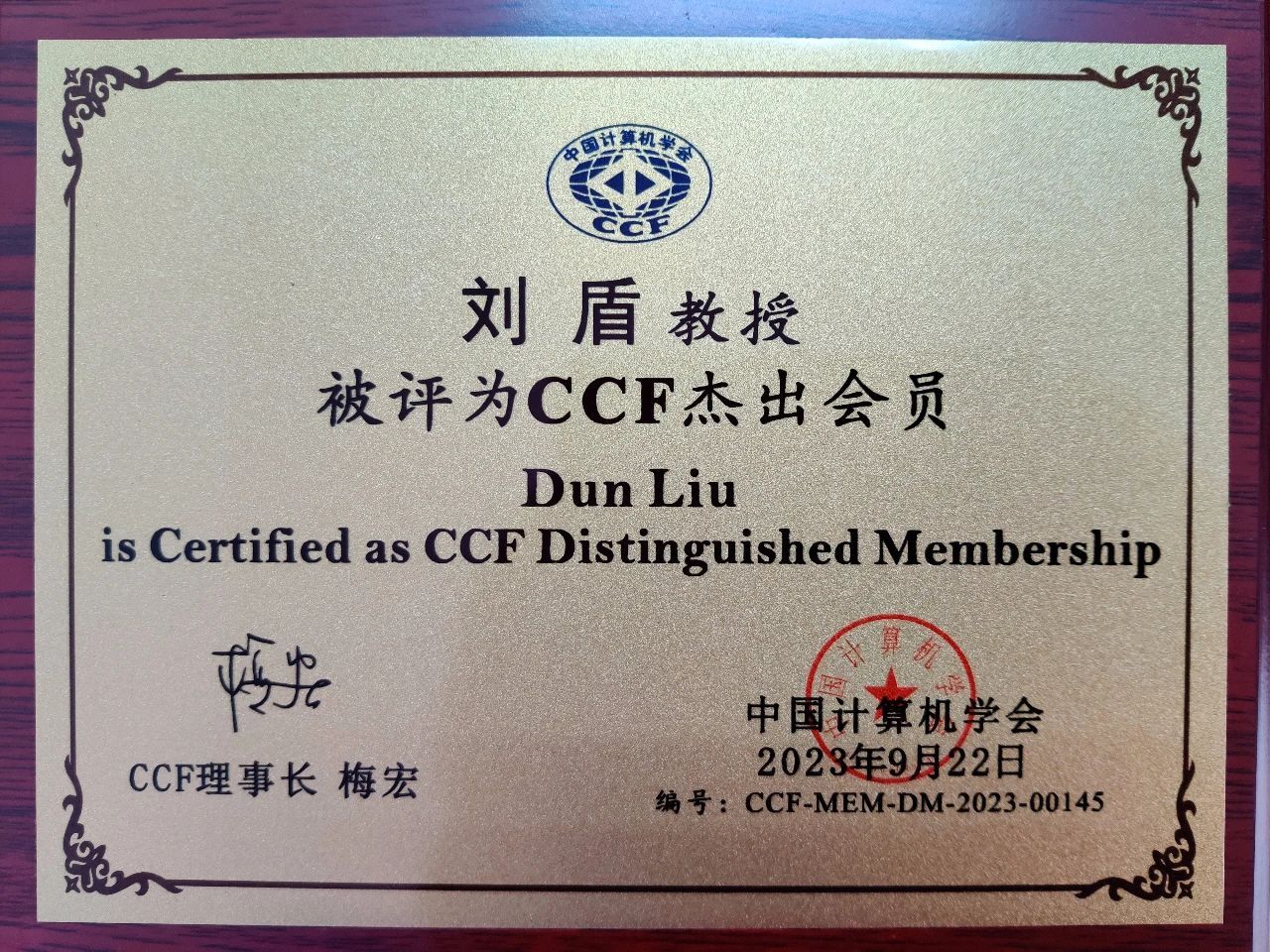 2023年9月,中国计算机学会(CCF)杰出会员评选会在北京举行。CCF会员评选委员会从学术成就、对CCF的贡献、业界认可度、CCF会龄等维度对申请人进行综合考量,最终评选出杰出会员305名。公司大数据决策与信息管理团队负责人刘盾老师成功当选杰出会员(Distinguished Membership)。