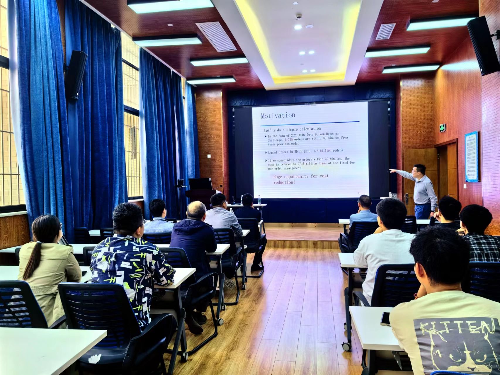 2024年4月25日新加坡管理大学林云峰教授应邀在公司0218室为公司师生作了题为“Managing The Personalized Order-Holding Problem in Online Retailing”的学术讲座。本次学术活动由公司副经理聂佳佳教授主持,公司经理韩科及部分教师、研究生参加了此次学术活动。聂佳佳教授首先对林云峰教授的学术成果进行了介绍,同时对林云峰教授的到来表示真挚的感谢!