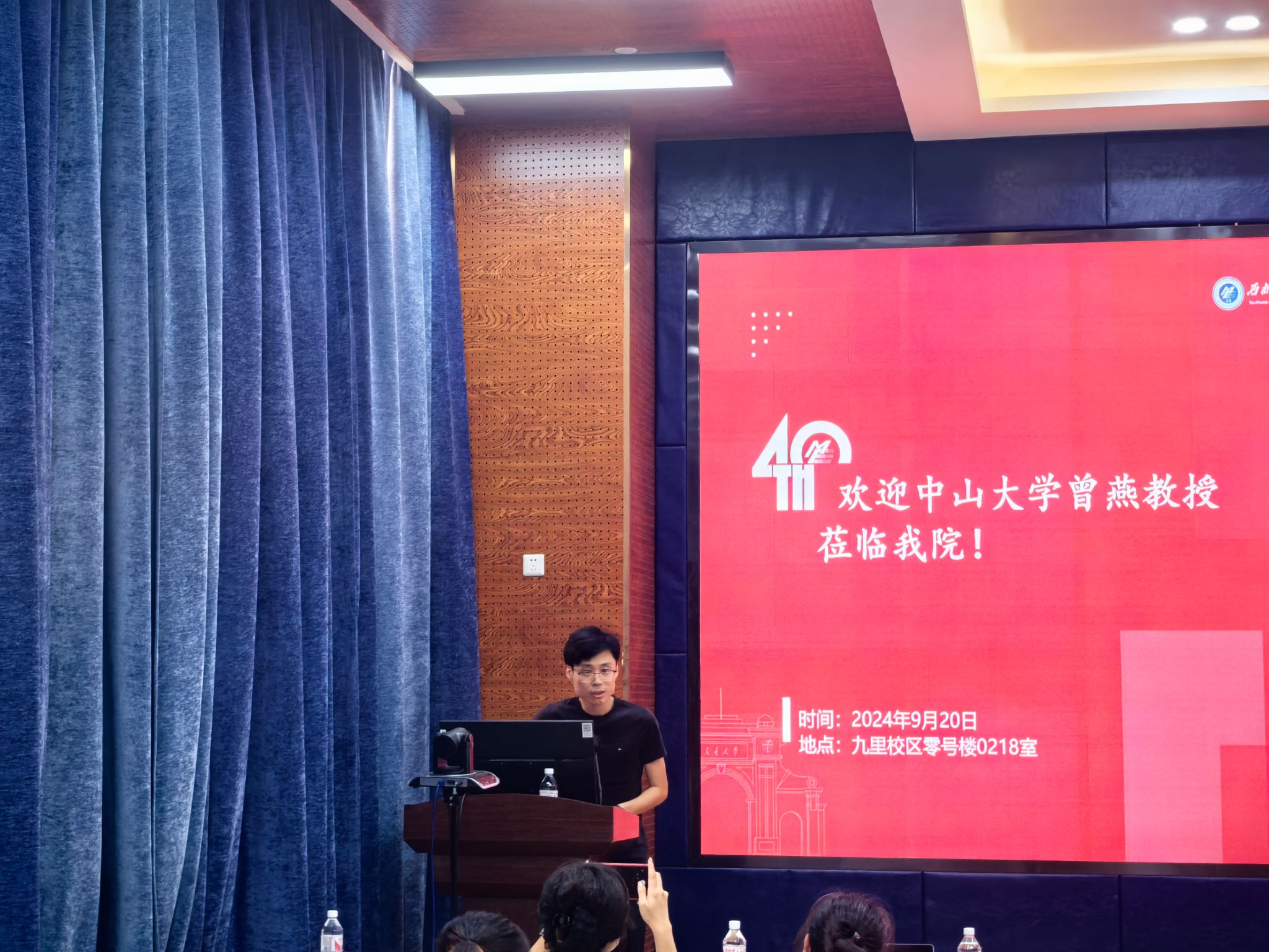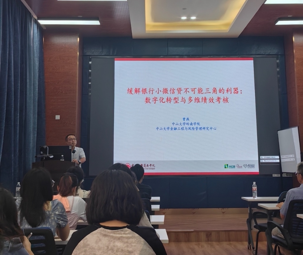 2024年9月20日上午,中山大学岭南公司的曾燕教授应邀在九里校区beats365为公司师生带来了一场题为“缓解银行小微信贷不可能三角的利器:数字化转型与多维绩效考核”的学术讲座。本次活动由公司副经理马锋主持,公司金融与财务学系朱宏泉教授等教师及研究生参加了此次活动,马锋副经理介绍了曾燕教授的学术成果,并对曾燕教授表示了欢迎与诚挚的感谢。