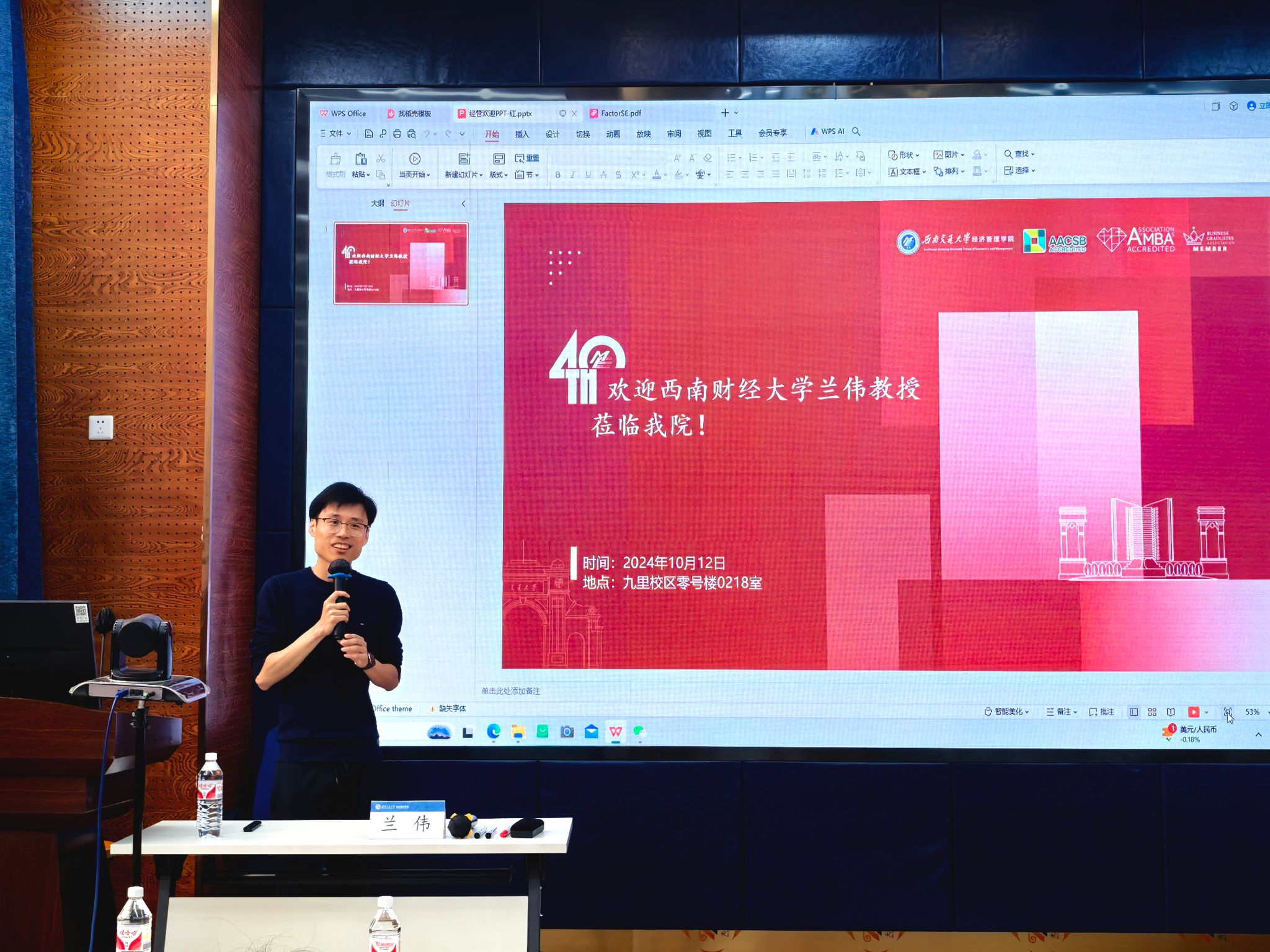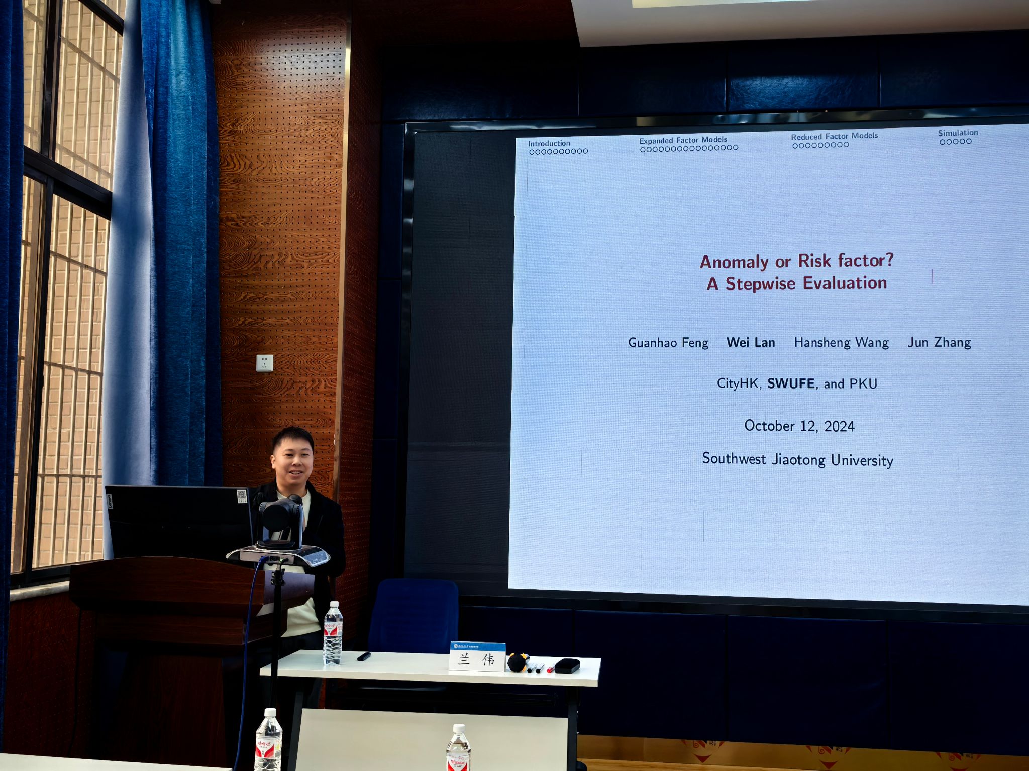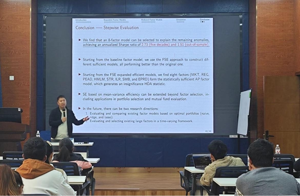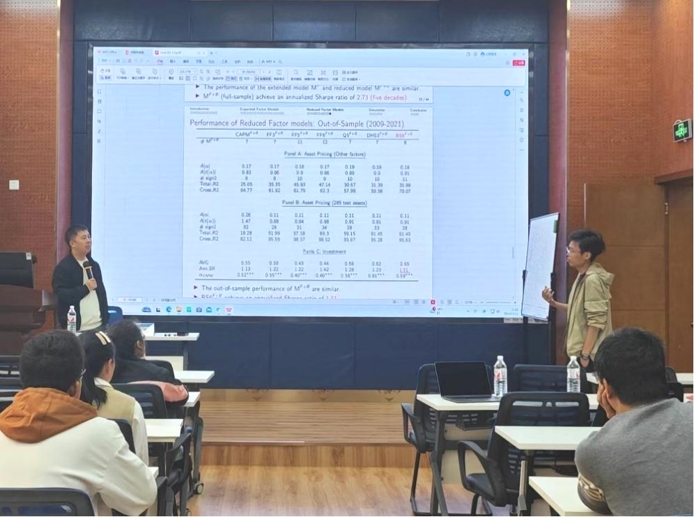 2024年10月12日上午,西南财经大学统计公司副经理兰伟教授应邀在九里校区beats365为公司师生带来了一场题为“大规模金融因子评估和筛选”的学术讲座。本次学术活动由公司副经理马锋主持,公司部分教师及研究生参加此次讲座,马锋副经理介绍了兰伟教授学术成果,并对兰伟教授到来表示欢迎与诚挚的感谢。