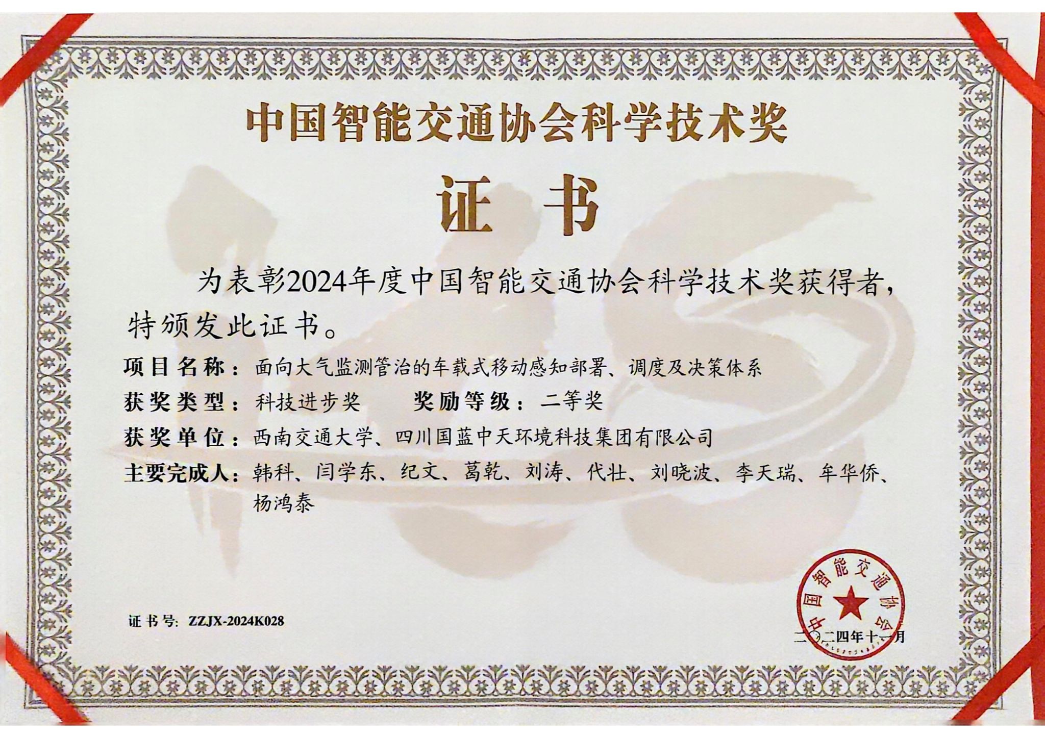 近日,中国智能交通协会公布了2024年度科学技术奖的获奖名单,由公司韩科教授牵头完成的《面向大气监测管治的车载式移动感知部署、调度及决策体系》荣获科技进步二等奖(完成单位:beats365官方网站、四川国蓝中天环境科技集团有限公司)。这一荣誉是beats365官方网站在“交通+环境+管理”交叉领域取得的重要进展,也是beats365在行业牵引科研方面取得的代表性成果。