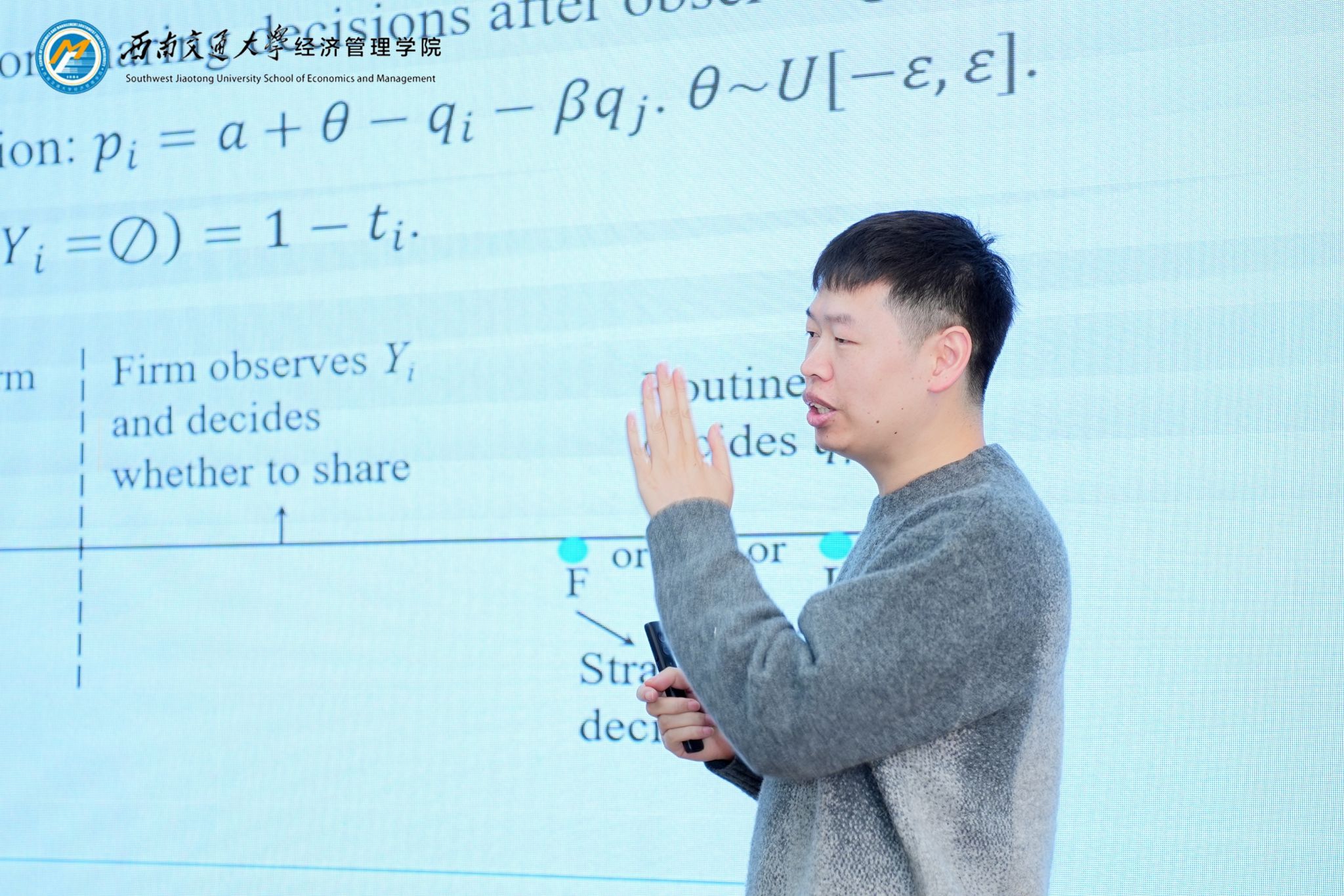 第三场报告由beats365副经理聂佳佳主持,beats365罗华江老师作主题为“Information sharing between competitors with endogenous production timing”的报告。该研究对竞争企业的需求信息共享动机及与生产时机策略间的相互影响展开分析。