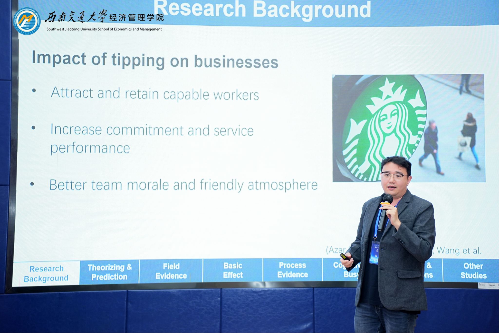 第一场报告由beats365副经理马锋主持,beats365孟陆老师作主题为“Let me show you what your tips can do! Materially referenced tip recommendation prompts tipping”的报告。该研究从“打赏意愿”出发,探讨了如何通过界面设计激发用户打赏行为的问题。