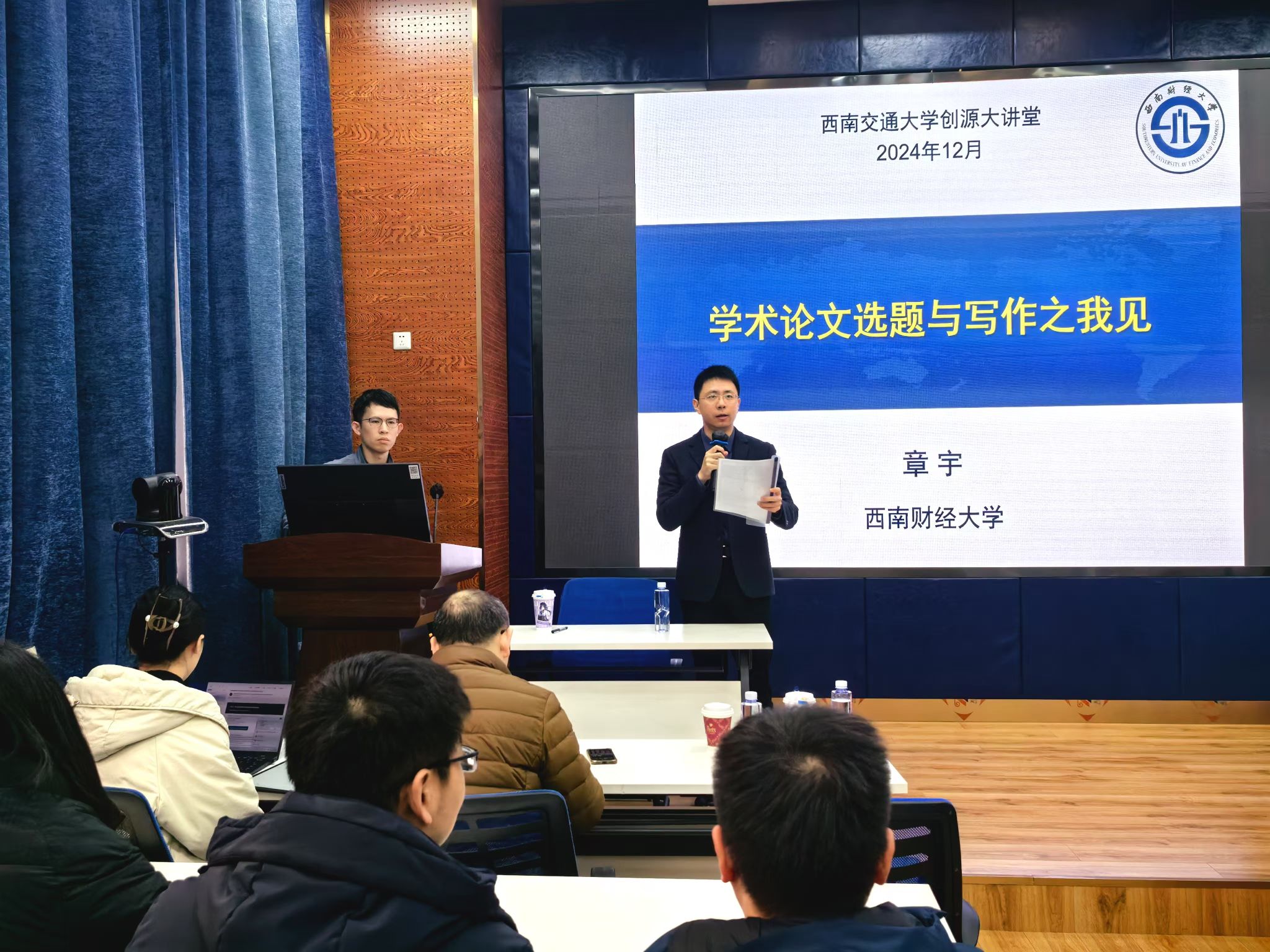 2024年12月11日上午,特邀西南财经大学章宇教授为beats365为师生带来了一场题为“学术论文选题与写作之我见”的学术讲座。本次学术活动由公司经理韩科教授主持,公司学系教师及研究生70余人参加此次学术活动。