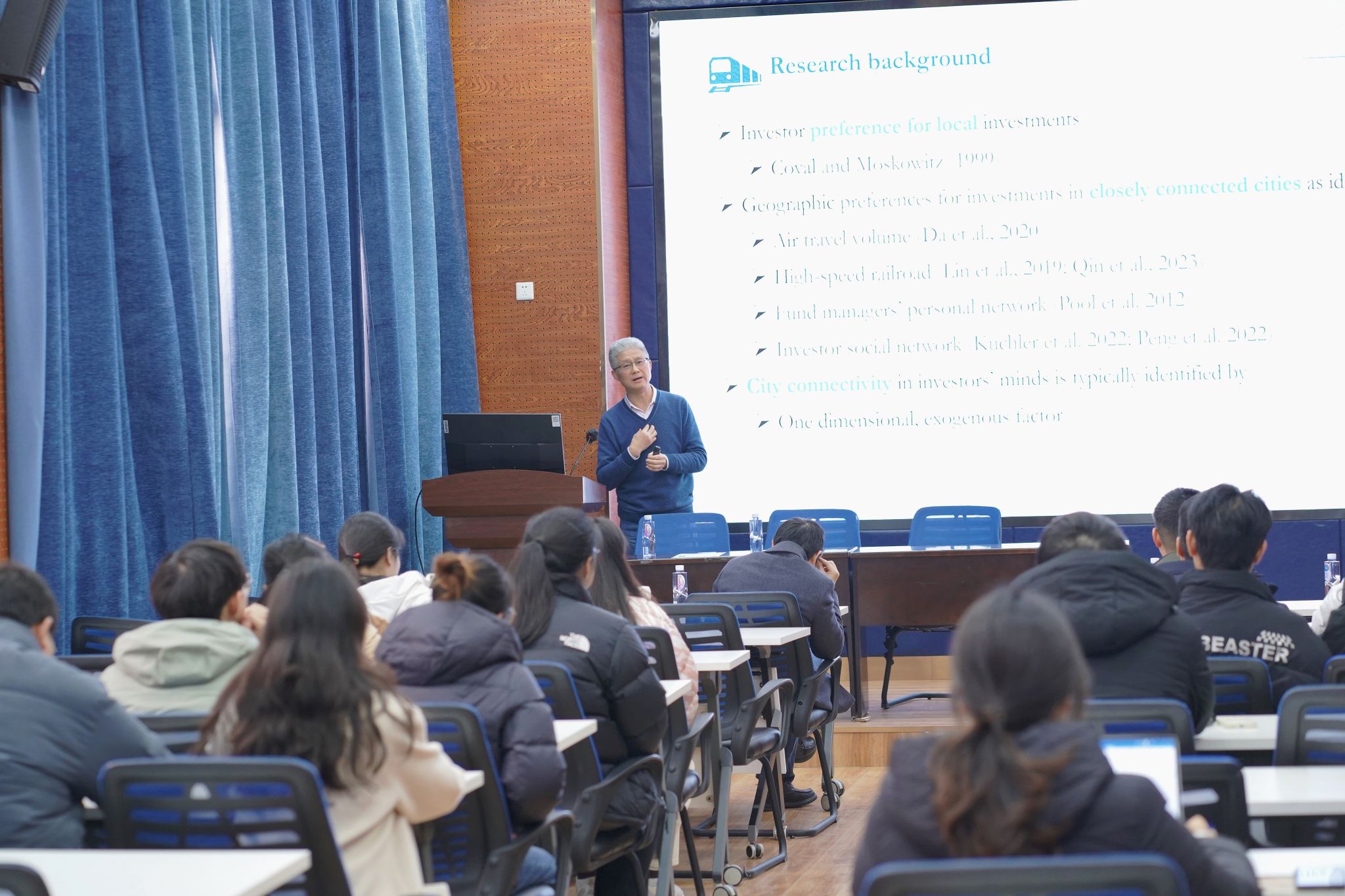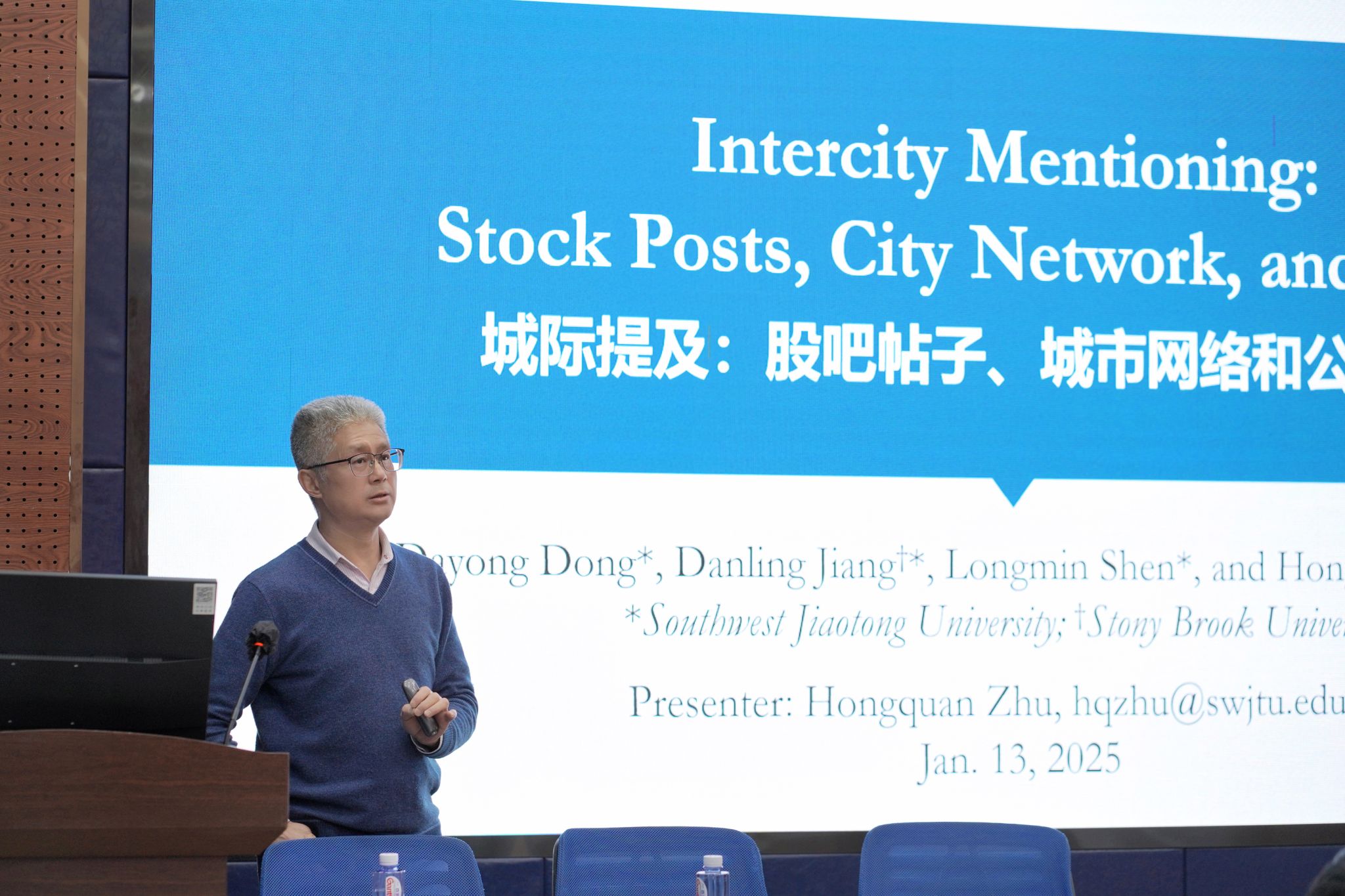2025年1月13日,在beats365官方网站九里校区beats365举办了师道永传,匠心筑梦——资深教师系列讲座,本次讲座特邀公司的朱宏泉教授作为主讲嘉宾,围绕“Intercity Mentioning: Stock Posts, City Network, and Firms(城际提及:股市帖子、城市网络与企业)”这一主题展开。本次学术活动由金融与财务学系主任董大勇教授主持,董大勇教授向与会者介绍了朱宏泉教授的学术背景及其在该领域的贡献,并对朱教授的分享表达了诚挚地感谢。