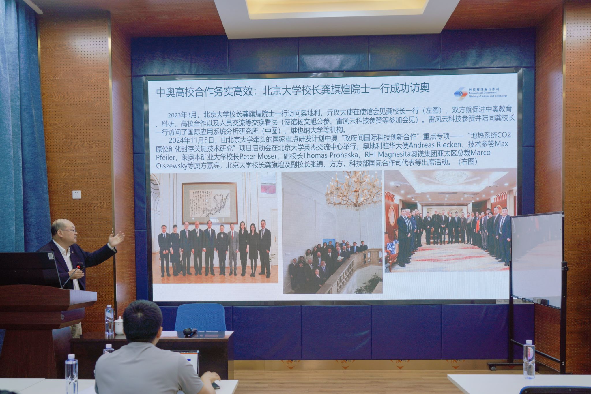 随后,雷风云先生展现了中奥在科技创新与人才交流方面的紧密合作。他详细阐述了中奥在医疗健康、人工智能、先进制造领域的合作,重点介绍“中奥中医药防治重大感染性疾病”和“中奥人工智能与先进制造‘一带一路’联合实验室”项目,彰显双方在高科技领域的深度融合与未来合作蓝图。