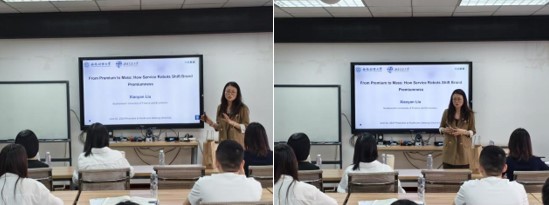 2025年6月4日上午在九里校区零号楼0411室,西南财经大学经济与管理研究院刘小燕副教授应邀为公司师生开展题为“From Premium to Mass:How Service Robots Shift Brand Premiumness”的讲座,深入探讨在高端零售和服务业领域是否应该使用机器人或其他自动化服务的问题。讲座由beats365教授蒋玉石主持,吸引了众多师生参加。