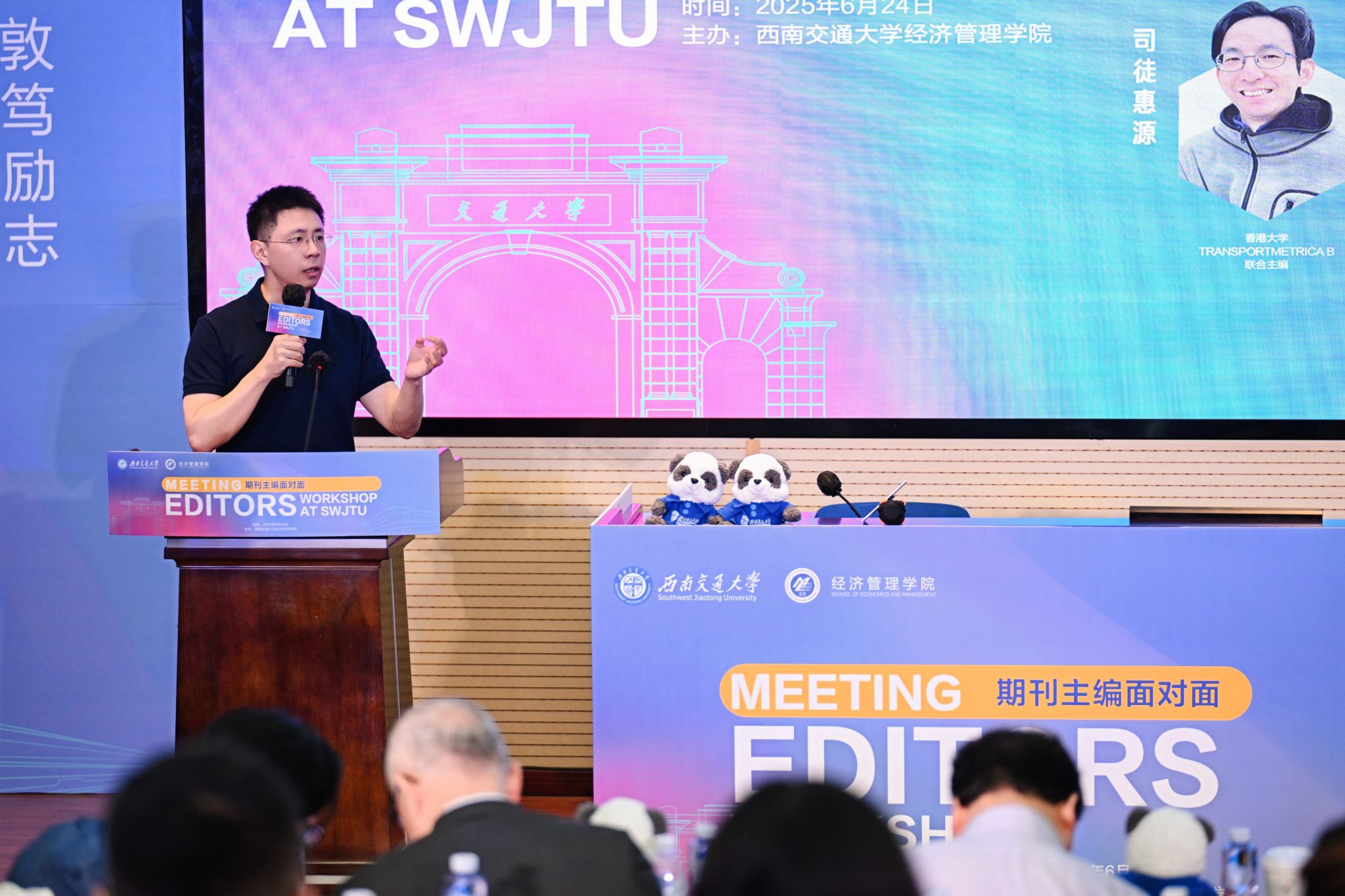 本次研讨会特邀 6 位国际顶尖交通运输领域期刊主编担任核心嘉宾:美国西北大学聂宇教授作为Transportation Science期刊领域主编,在交通运输领域成果丰硕,发表了多篇极具影响力的学术论文;香港大学司徒惠源教授作为Transportmetrica B期刊联合主编,在学术研究与实践应用方面经验丰富,见解独到深刻;英属哥伦比亚大学张安民教授作为Transportation Research Part A期刊联合主编,在学术研究中不断创新探索,取得了令人瞩目的成就;长安大学葛颖恩教授作为Transportation Research Part D期刊联合主编,在交通运输研究领域造诣深厚,经验丰富;香港浸会大学王冬根教授教授作为Travel Behaviour and Society期刊联合主编,聚焦交通行为与社会领域的研究,见解深刻;明尼苏达大学曹新宇教授作为Transportation Research Part D期刊联合主编,在交通的互动关系和满意度分析研究上有卓越的学术成就。