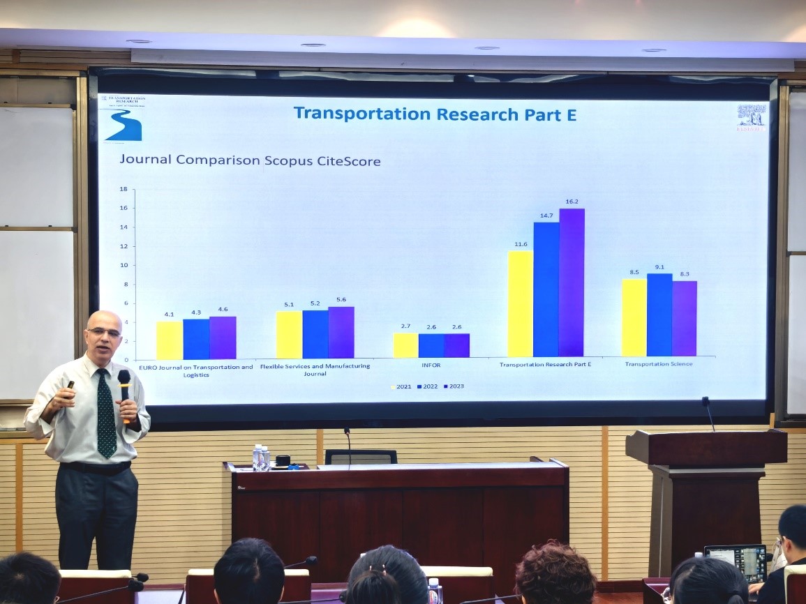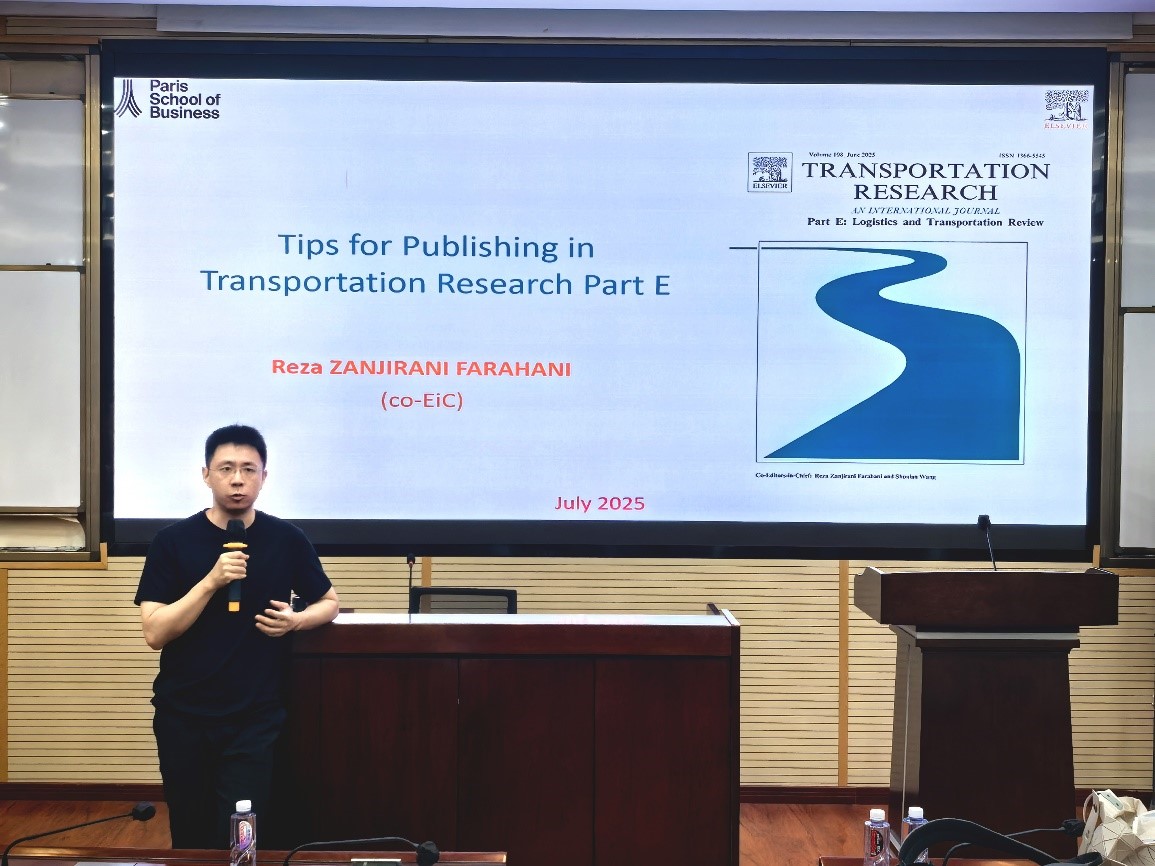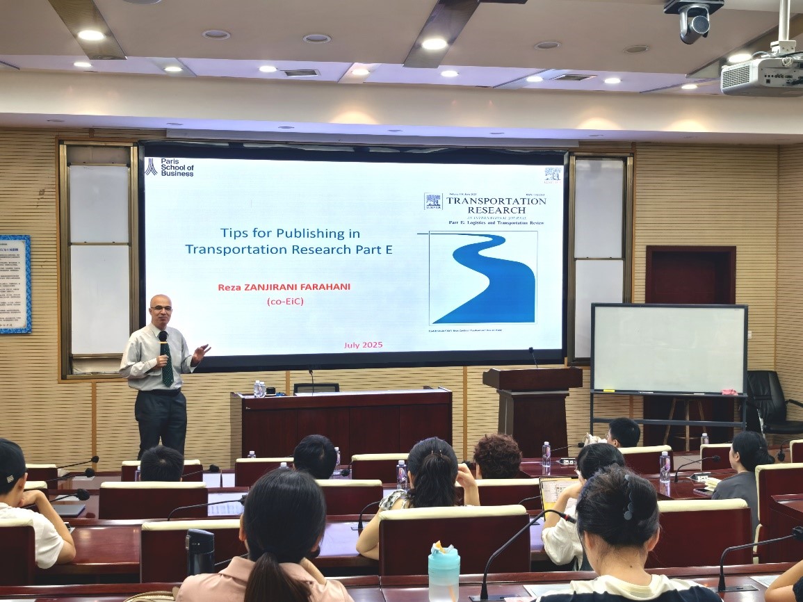 2025年7月4日上午在九里校区零号楼0204室,公司特邀Transportation Research Part E (TR-E)主编、法国巴黎商公司Reza Zanjirani Farahani教授做题为“Publishing in Top-Tier Journals: From General Principles to Transportation Research Part E (TR-E)”的学术讲座。讲座由beats365经理韩科教授主持。韩科经理首先向Reza教授介绍beats365官方网站和beats365的概况,然后向与会师生介绍Reza教授的学术背景与成就,并对Reza教授的到来表示热烈欢迎。