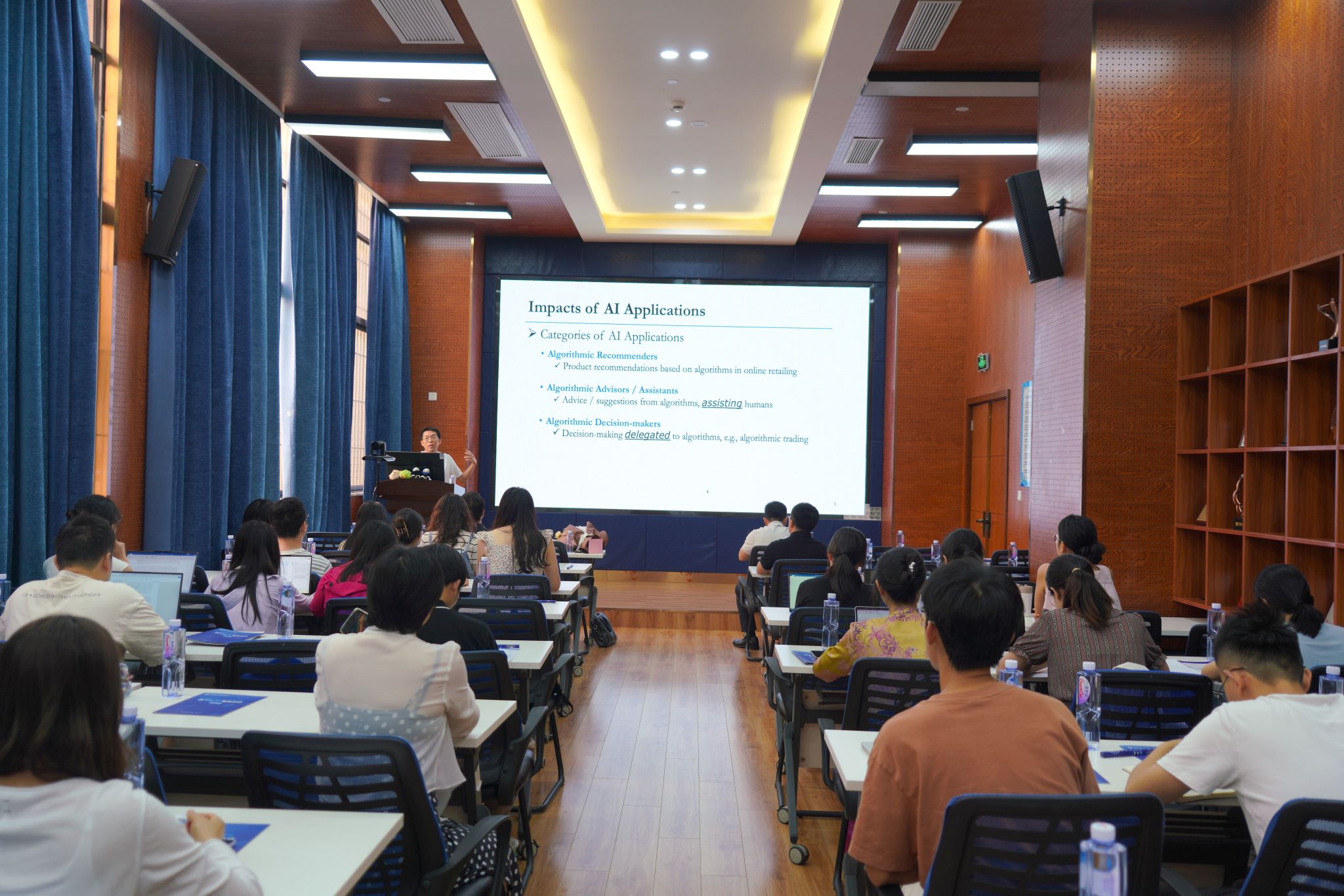 聘任仪式结束后,李喜彤教授应邀为公司师生开展讲座。李教授根据已发表的三篇论文,深入探讨了团购促销对商家在线声誉的影响,以及历史评论的效价和数量在其中的调节作用。本次讲座由公司研究生教育中心主任耿维教授主持。