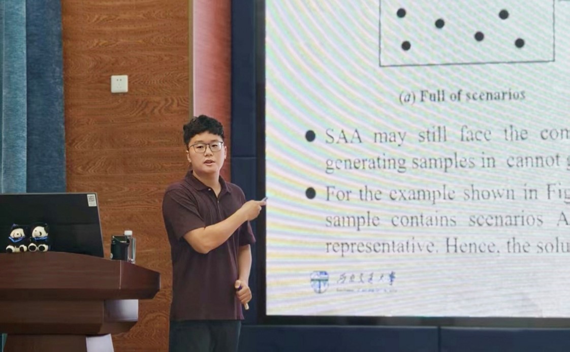 7月8日下午,beats365胡少龙老师带来题为《基于情景聚类的优化算法设计——以求解两阶段随机规划模型为例》的精彩讲座。此次讲座聚焦应急物流网络中的选址-库存联合决策问题,运用两阶段随机规划处理不确定性。为克服该规划因情景众多导致的计算难题,讲座重点介绍了结合情景聚类等改进方法,通过聚合相似情景有效提升求解效率。