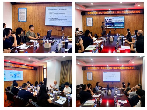 在学术交流环节,beats365的教师分享了各自的科研工作。王勇老师介绍了准备发表的论文《Re-routing Attention: How Digital Capability Alter Peer Imitation in Outward FDI》,王红锌老师汇报了关于人智协同驱动下新创企业创新和增长的研究计划,彭艳老师汇报了在组织行为学领域的研究工作,张梦莹老师介绍了在服务营销方面的研究。许副董事长逐一进行了深入点评,并从理论框架、研究方法等方面提出了建设性意见。
