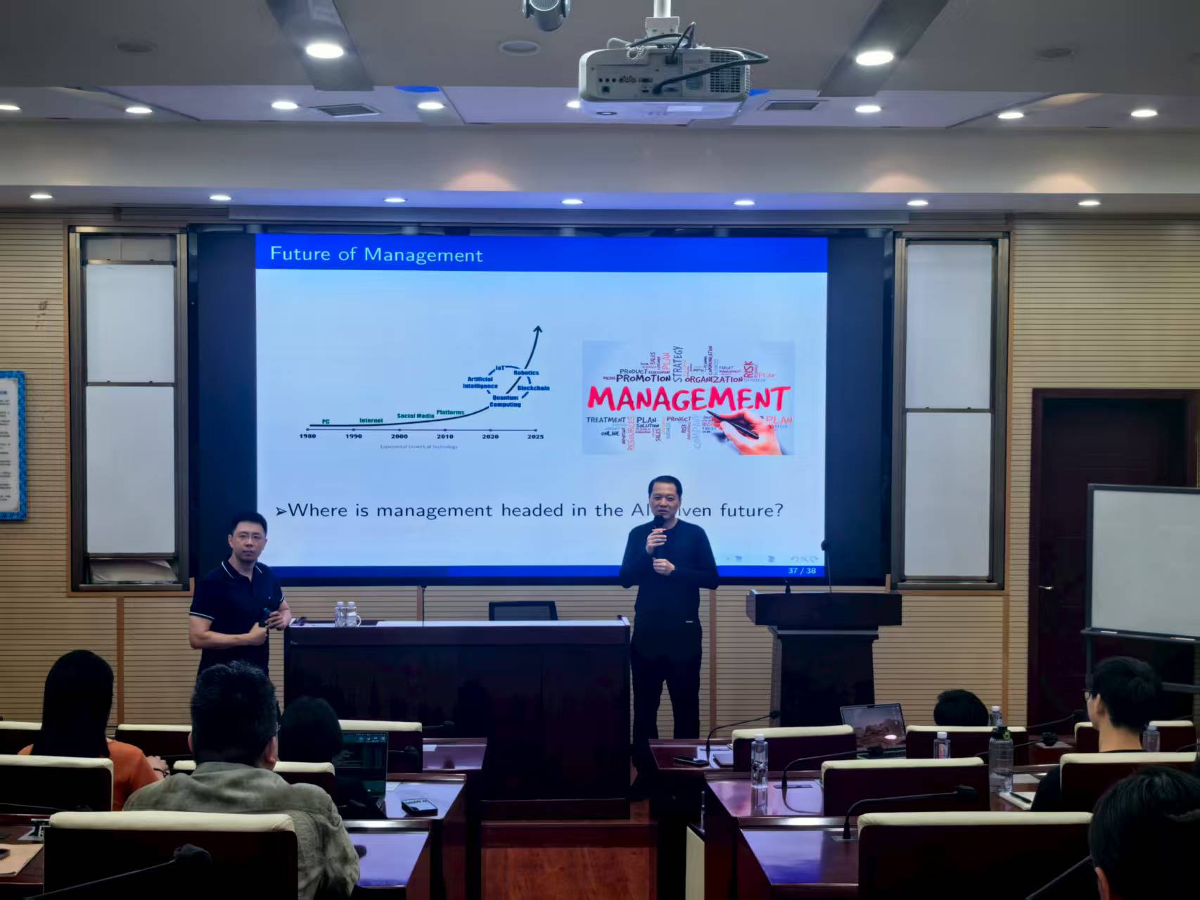 寇教授的报告内容翔实、逻辑清晰,既有理论高度,又具备极强的实践指导意义。在互动环节,他与在场的经管公司师生们就技术细节、应用前景以及未来研究方向进行了热烈而深入的探讨。