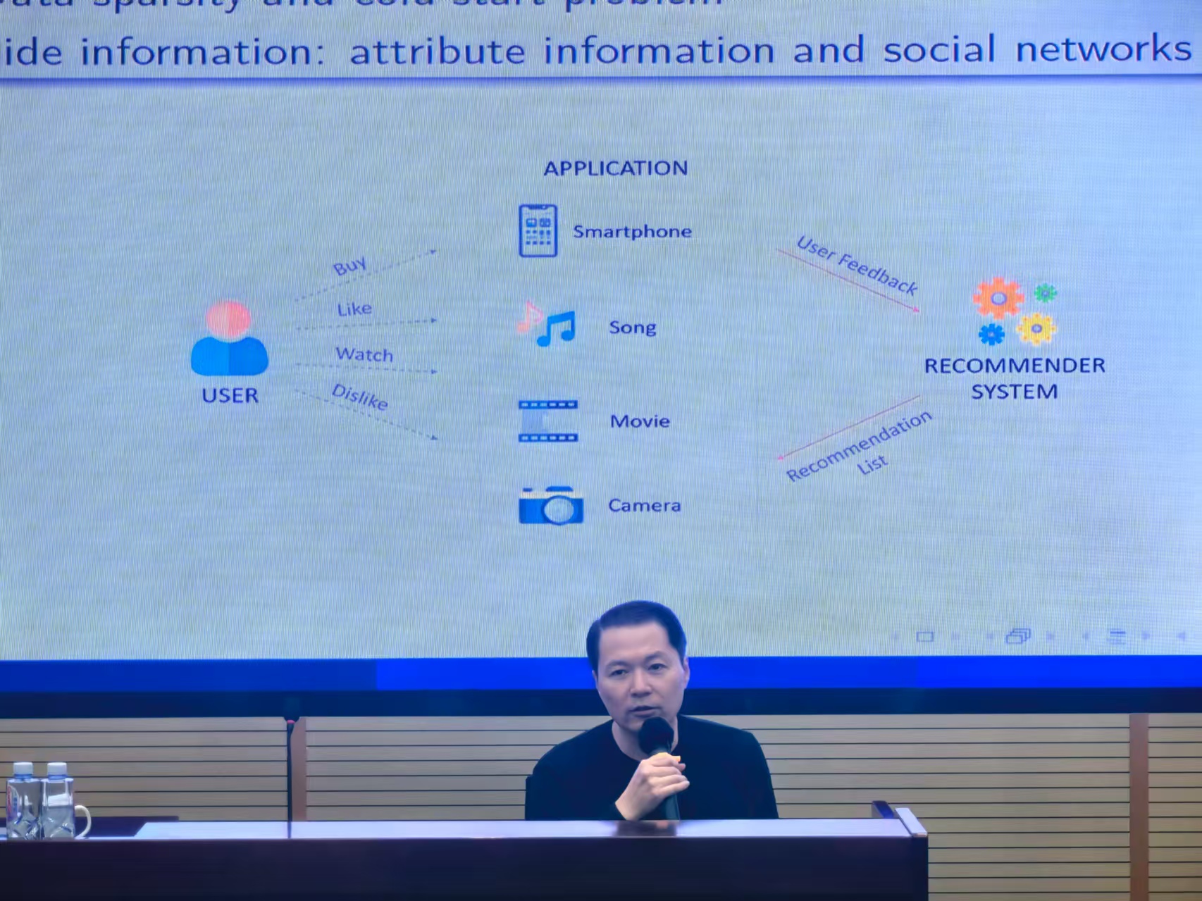 寇纲教授的研究正是针对这些核心痛点展开了创新性攻关。在讲座中,他首先介绍了一种联合属性与结构的多视角图对比学习方法。针对数据稀疏性问题,寇教授提出了一个创新的多视角融合推荐系统框架。该框架巧妙地运用上述多视角图对比学习技术,将用户之间的社交关系网络与物品自身的语义关联关系进行整合,有效补充了单一交互数据的不足,显著缓解了因数据稀缺所带来的性能下降问题。而对于业界尤为棘手的冷启动场景,寇教授介绍了一种精巧的双向在线蒸馏机制。该机制在“内容增强的协同嵌入网络”与“基于内容的嵌入网络”之间搭建了双向知识传递的桥梁,实现了内容侧信息与协同过滤信号的自适应深度融合。这一设计不仅有效传递了知识,更极大地提升了模型在冷启动情境下的推荐效果和泛化能力。
