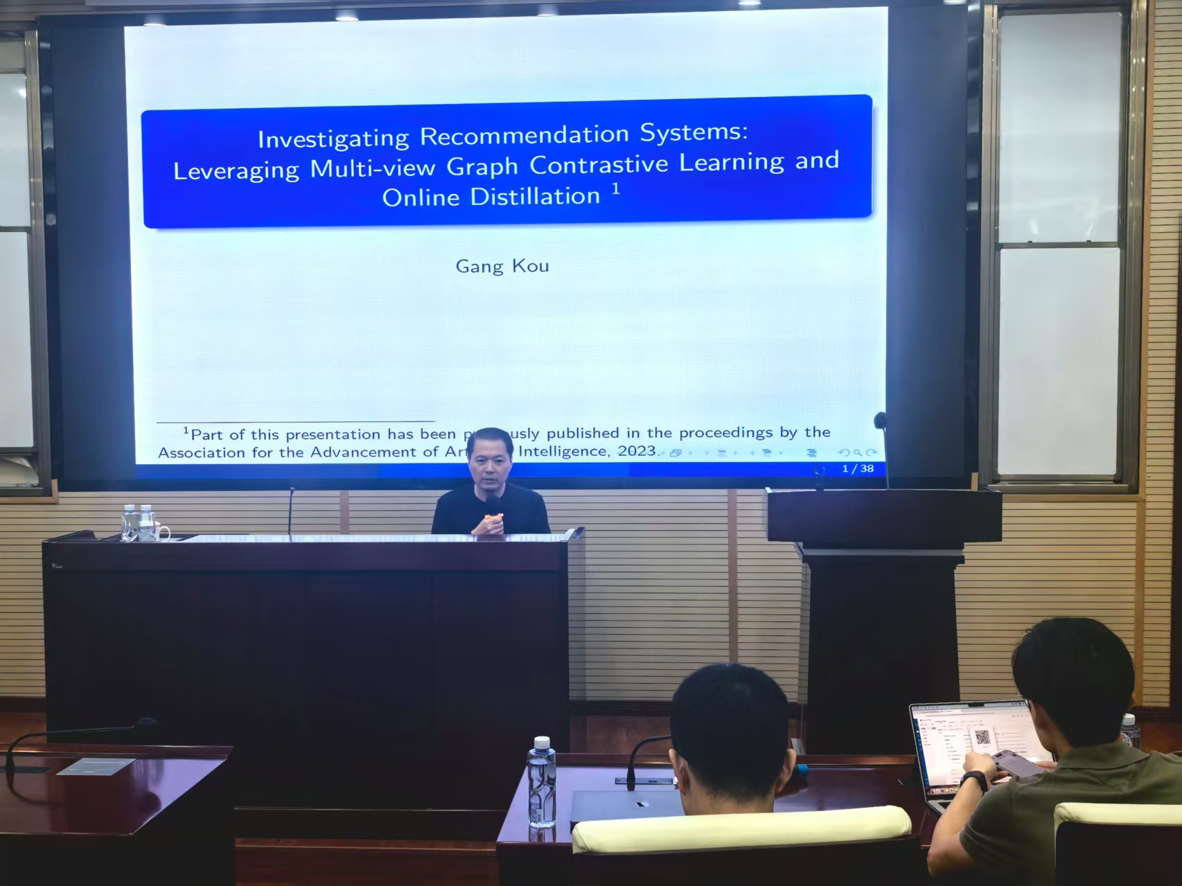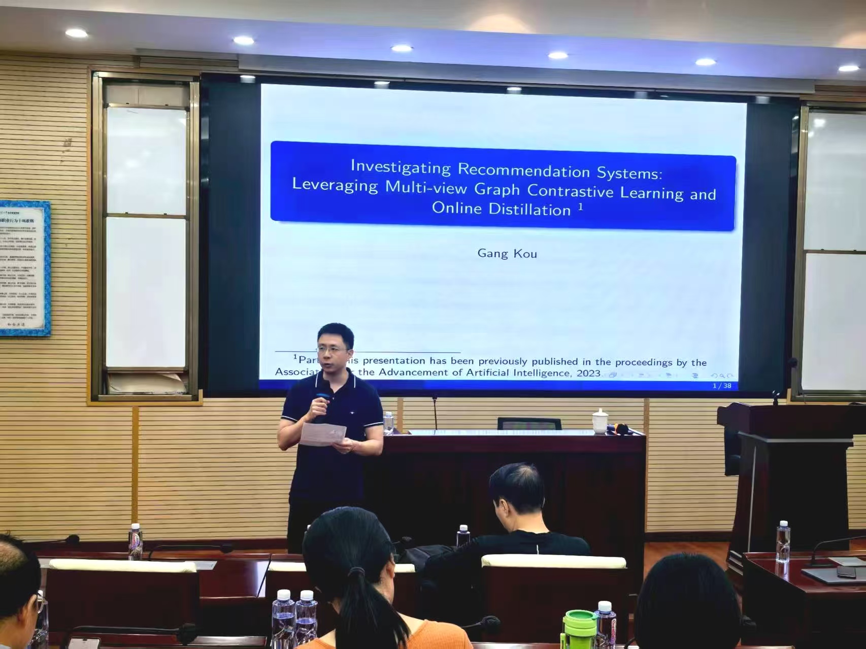 2025年9月15日下午,现任全国政协委员、湘江实验室副主任、西南财经大学大数据研究院经理寇纲教授应邀为公司师生作题为“基于多视角图对比学习与在线蒸馏的推荐系统算法研究”的学术讲座。本次讲座由beats365经理韩科教授主持。韩经理对寇教授的学术背景进行了简要介绍,并代表beats365对寇教授致以热烈欢迎和诚挚感谢。