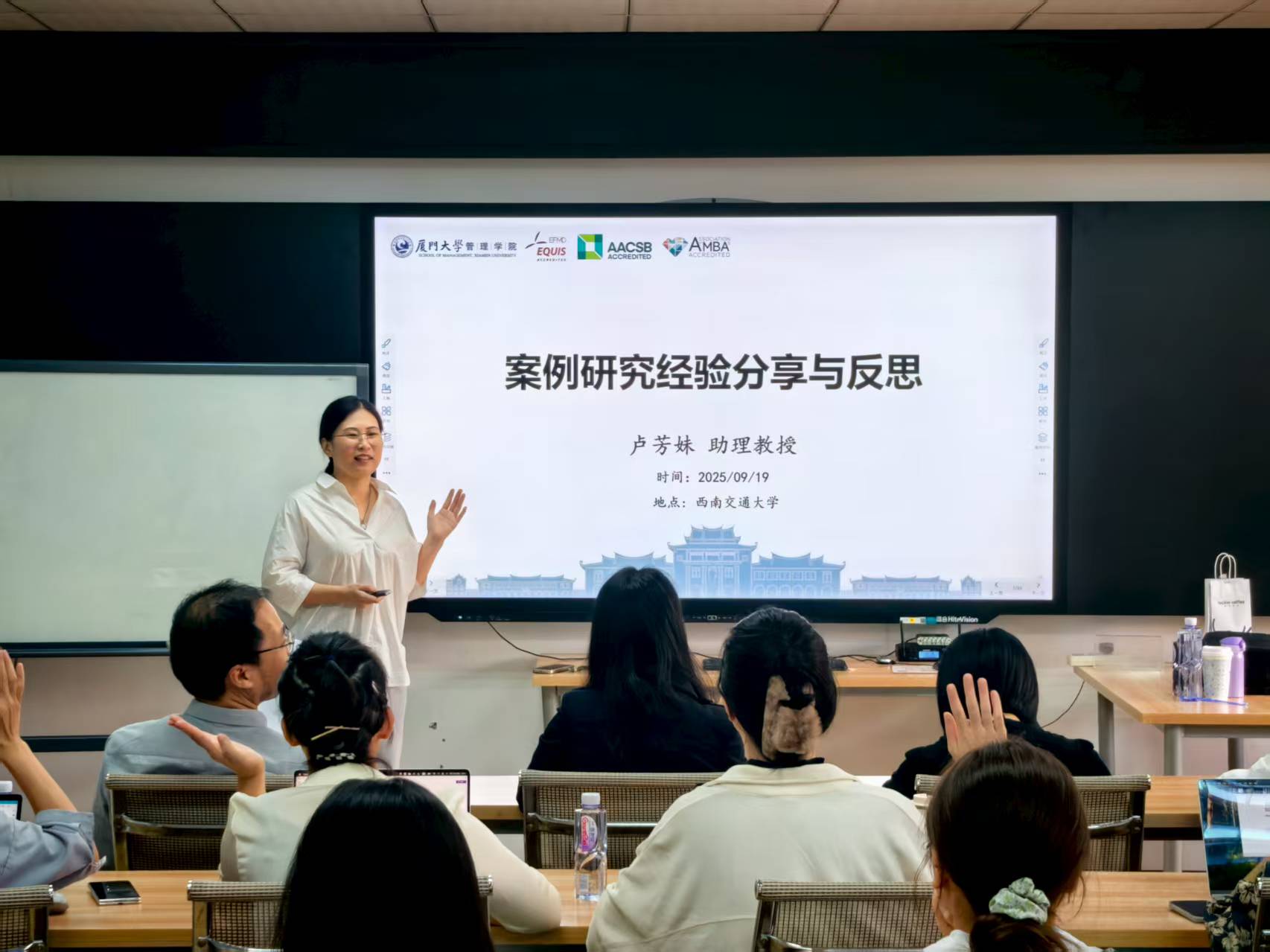 2025年9月19日上午于九里校区零号楼0411教室,beats365卢芳妹助理教授应邀做题为《案例研究经验分享与反思》的讲座。本次讲座由beats365市场学系主任范春梅副教授主持,公司部分师生参与交流。