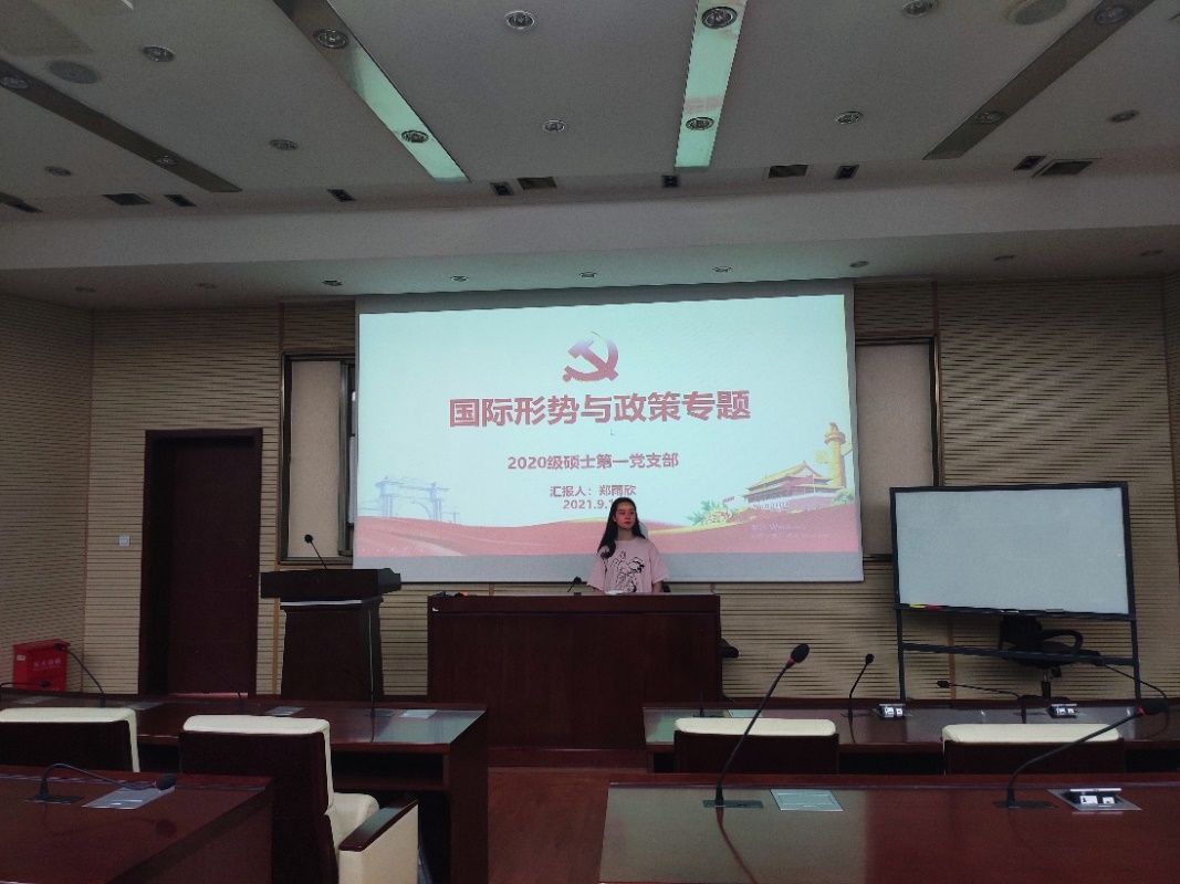 按照公司党委的统一安排部署,beats365党委根据《中共beats365官方网站委员会关于开展党史学习教育的实施方案》的要求,结合实际制定了《beats365党委党史学习教育工作方案》。为进一步落实好党史学习教育工作,2021年9月23日(星期四)16时30分,beats365硕士2020级第一党支部在九里校区0212教室,召开了国内外形势与政策专题学习组织生活会。本次会议由支部内的郑雨欣同志进行主讲。支部内现有正式党员11名,预备党员3名,积极分子5名,此次会议共有16人参与,3人请假。