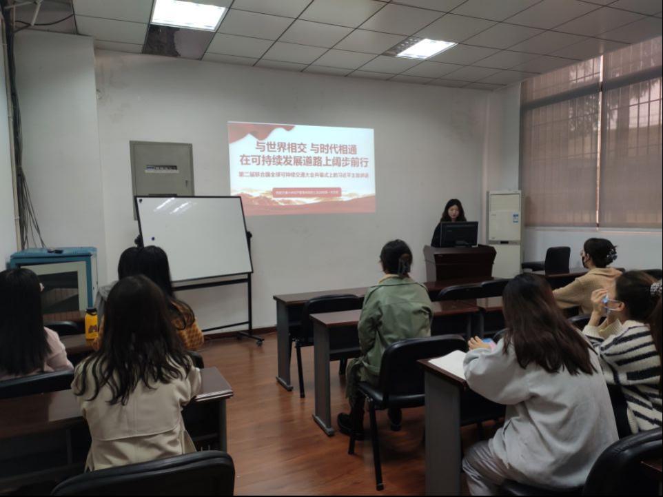 第二届联合国全球可持续交通大会于2021年10月14日至16日以线上线下相结合方式在北京举行。10月14日晚,国家主席习近平以视频方式出席第二届联合国全球可持续交通大会开幕式并发表题为《与世界相交 与时代相通 在可持续发展道路上阔步前行》的主旨讲话。2021年10月21日14时,beats365硕士2020级第一党支部在九里校区0217教室,开展了“习近平主席在第二届联合国全球可持续交通大会开幕式上的主旨讲话”的专题学习。本次会议由支部内的魏倩倩同志进行主讲,支部内15名党员参与活动。