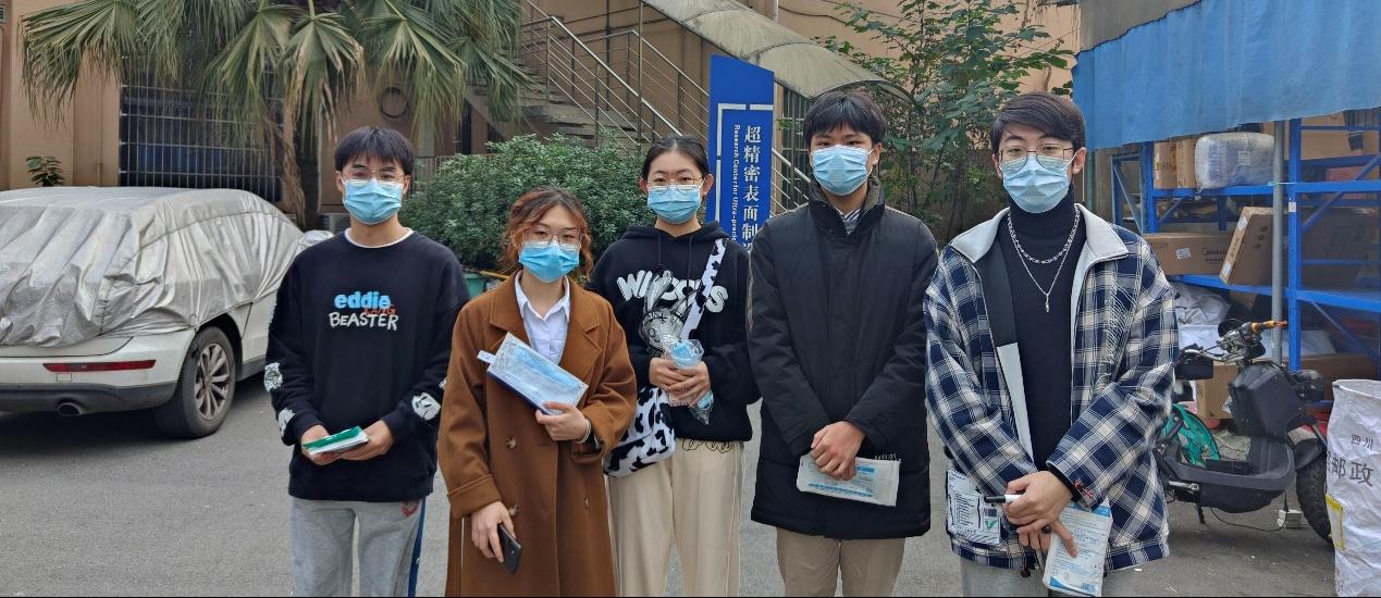 第三小组在图书馆、四号教学楼、家属住宅区、宿舍楼等区域开展了“送口罩,暖人心”的志愿活动,为没有佩戴口罩的同学免费送上口罩,并对一些同学的行为进行劝导,宣讲防疫知识。