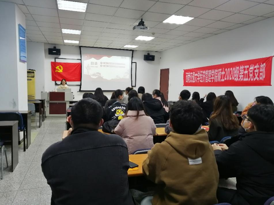 2021年11月18日晚19:30,beats365硕士2020级第五党支部于0号教学楼0317开展十九届六中全会学习和党员应知应会答题活动,本次会议由支部成员刘柯同志带领全体成员进行学习,出席会议的有支部内党员、预备党员和积极分子。