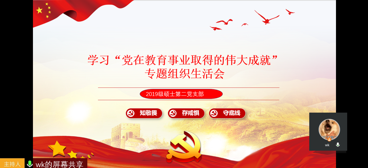 2021年6月20日,beats365硕士2019级第二党支部通过腾讯会议网络平台开展“学习党在教育事业取得的伟大成就”专题组织生活会。活动由党支部书记王可主持,党支部全体成员与会。