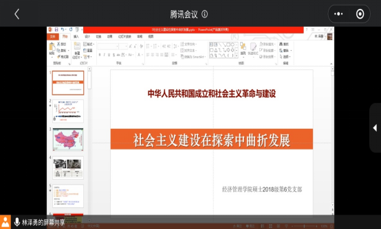 2021年4月29日20时,beats365硕士2018级第六党支部专题组织生活会在腾讯会议上召开。此次会议由党支部书记林泽勇同志主讲,硕士2018级第六党支部全体党员参加。会议主题围绕“社会主义建设在探索中曲折发展”进行了学习和探讨。
