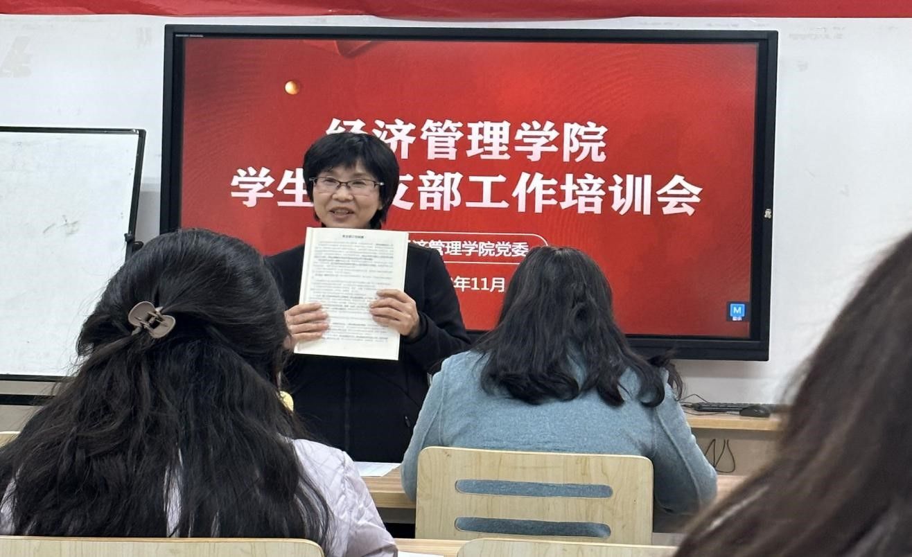 为深入学习贯彻习近平新时代中国特色社会主义思想,加强高校员工党支部建设,规范发展党员工作流程。2023年11月30日下午,公司党委副书记余小英,公司员工工作组副组长、研究生辅导员王哿,公司本科辅导员张媛媛,在九里校区0411会议室为公司本科生及研究生党支部书记和支部委员开展了员工党支部工作培训会。
