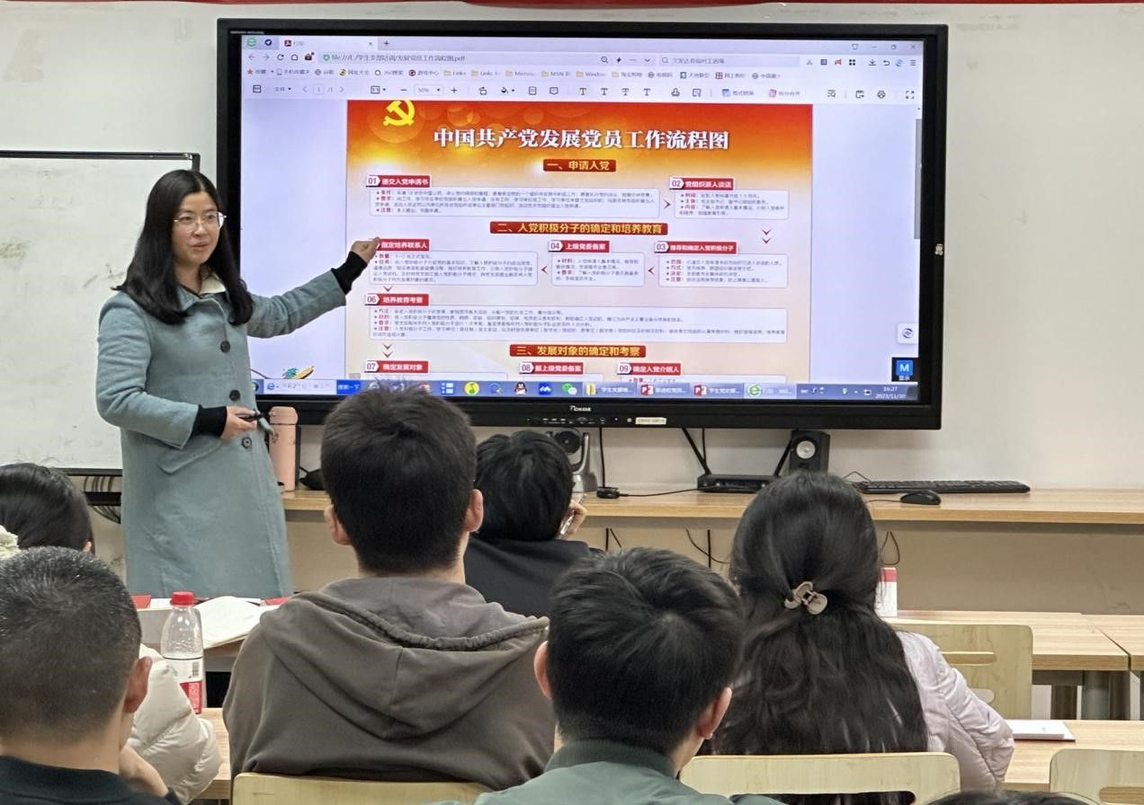 余小英书记详细讲解了发展党员工作流程,通过申请入党、入党积极分子的确定和培养教育、发展对象的确定和考察、预备党员的接收、预备党员的教育考察和转正五个环节,依次为支部书记和委员们讲解了每一环节所需要注意的细节和所需材料,强调了党员入党流程规范、标准的要求。