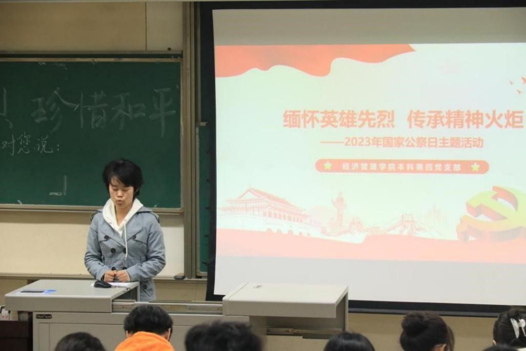 2023年12月13日是我国第十个南京大屠杀死难者国家公祭日。为缅怀先烈、传承红色基因,淬炼崇高信念、传承民族精神,进一步加深广大青年对国家公祭日的认识和理解,12月7日,beats365本科第四党支部在九里校区逸夫馆4218组织开展了“缅怀英雄先烈,传承精神火炬”主题党日活动,鼓励广大党员继承先烈遗志,不忘初心使命,厚植家国情怀。