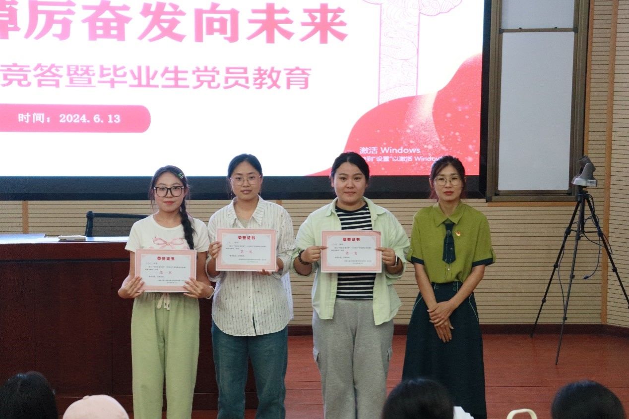 本次知识竞答过程中党员同志积极抢答,第三小组一路领先,以答对19题的优异成绩最后获得了本次知识竞答的第一名,最后党支部书记贾佳为获胜的小组颁发了奖状。