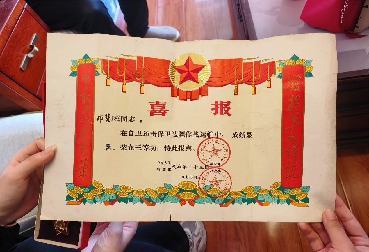 在交谈过程中,抗战老兵邓老先生声情并茂地向我们讲述了当年他作为汽车兵在对越自卫反击战中的经历,描述了当年战争中部队的艰苦生活以及他所承担的重要工作。他提到,在整个抗战过程中,处处都充满了艰辛与挑战,但我们的人民军队毫不畏惧,丝毫没有退缩,最终战胜了敌人。