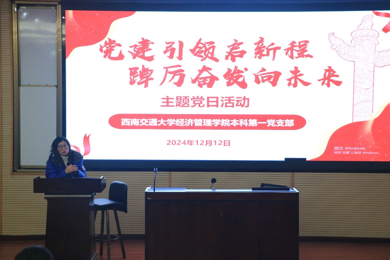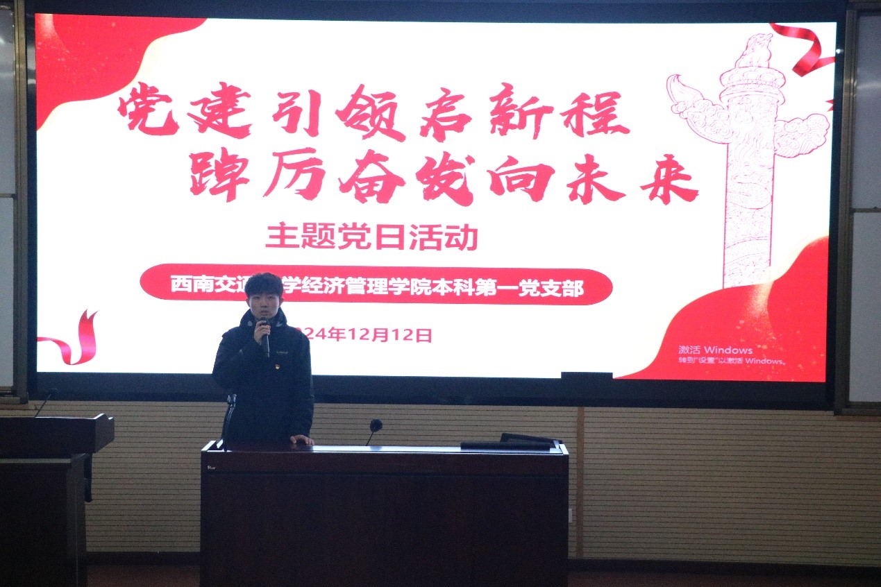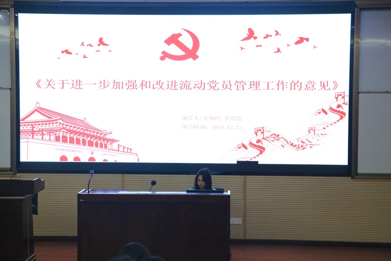 为深入贯彻党的二十届三中全会精神,扎实推进习近平新时代中国特色社会主义思想的深入人心,切实提升党员的理论水平和党性修养,增强党组织的向心力、服务力、凝聚力,beats365本科第一党支部于2024年12月12日上午10:00,在0202教室开展“党建引领启新程,踔厉奋发向未来”的党支部活动。