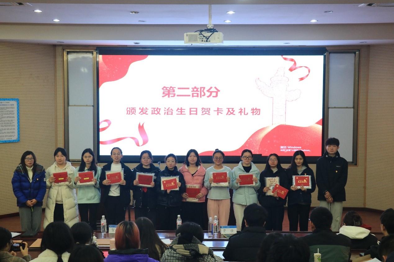 最后,beats365本科第一党支部开展了冬季政治生日会。党员代表发言,表达了作为青年党员应当注重提升自我能力,坚定理想信念,为社会发展出力。支部书记贾佳讲话,寄语全体党员坚守初心、勇担使命,在新时代征程中砥砺前行,并为本期党员同志颁发政治生日贺卡及礼物。在支部书记的带领下,全体党员共同重温了入党誓词,再次深刻感受到了入党时的初心和使命,坚定了为共产主义事业奋斗终身的理想信念。