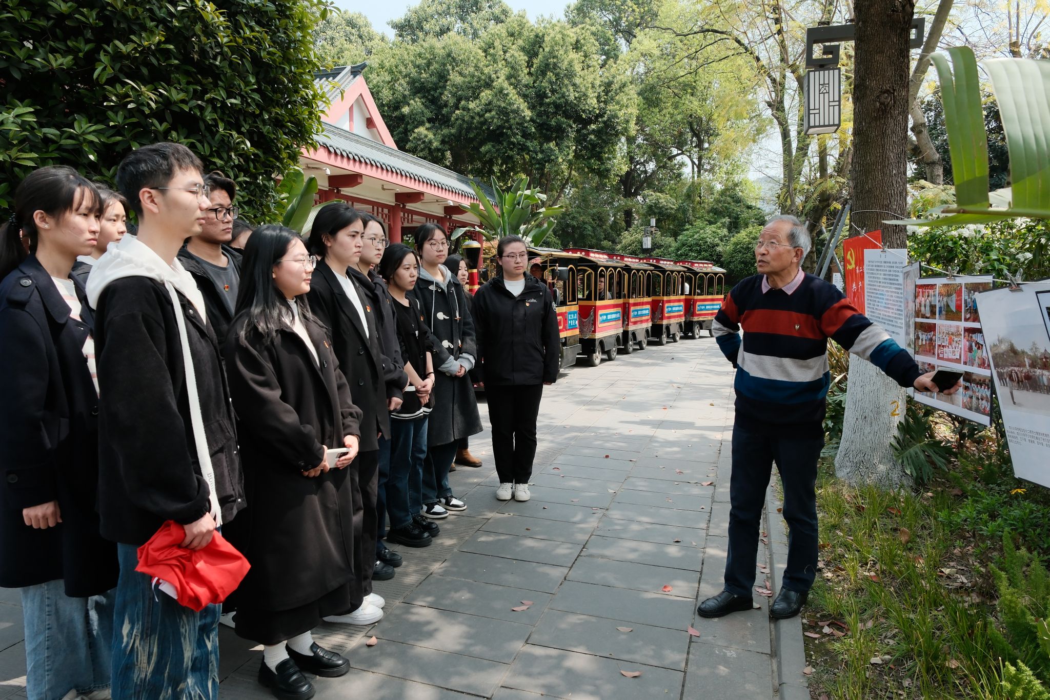 青松肃立,碑石无言。14时30分,党支部成员们在参观陵园时,遇到了一位老党员许正龙,跟随着许正龙同志对老革命家事迹的讲解,大家的思绪回到1949年那个寒风凛冽的冬天。1949年12月7日,国民党反动派在溃逃前夕,于十二桥附近秘密杀害了32名革命志士。杨伯恺、于渊、王干青……一个个闪光的名字,在黎明前的至暗时刻陨落。沿着展览,大家了解了更多党员同志的事迹。他们用生命诠释了“苟利国家生死以”的崇高精神。他们的名字,永远镌刻在历史的丰碑上;他们的精神,必将激励后人砥砺前行。