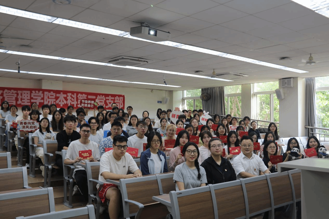 接下来,本科第二党支部全体成员共同观看了党支部为毕业生录制的祝福视频。视频中,积极分子和预备党员们表达了对即将毕业的学长学姐们的美好祝愿;党支部书记陈建奇、副书记时梦和青年委员游婷则表达了对毕业生党员们的期望与勉励。回望2021至2025这四年光阴,同志们专注学习的神情、参加活动的笑脸,都化作珍贵的影像在记忆中浮现。每一张合影都定格着青春最美好的模样,串联起全体同志共同书写的支部故事。